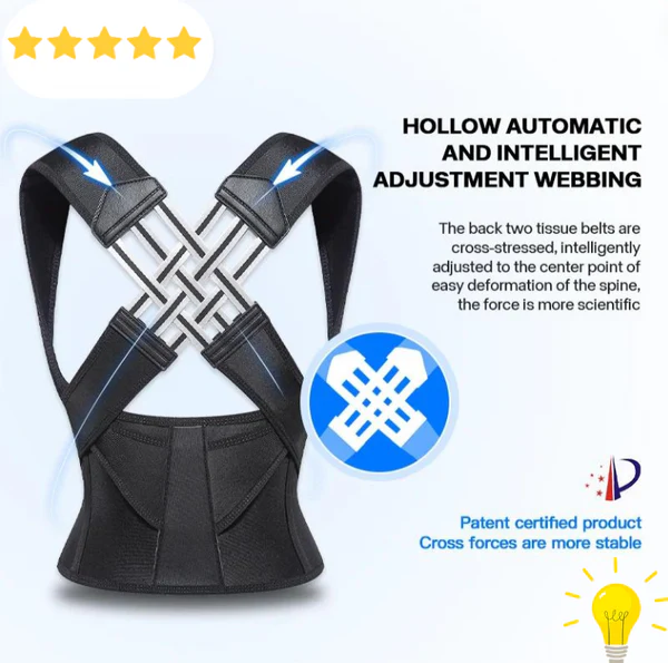 INNOVATIVE TWIN CROSS BELTS INTELLIGENTLY EMPHASIZE SPINAL ALIGNMENT, PROMOTING PERFECT POSTURE WITHOUT RESTRICTING YOUR MOVEMENTS AND ENSURING COMPLETE FREEDOM